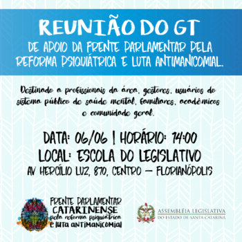 Na próxima segunda-feira (6), acontecerá a primeira reunião do Grupo de Trabalho formado por profissionais, gestores, entidades de representação, usuários do sistema de saúde mental, familiares, acadêmicos e comunidade, para…