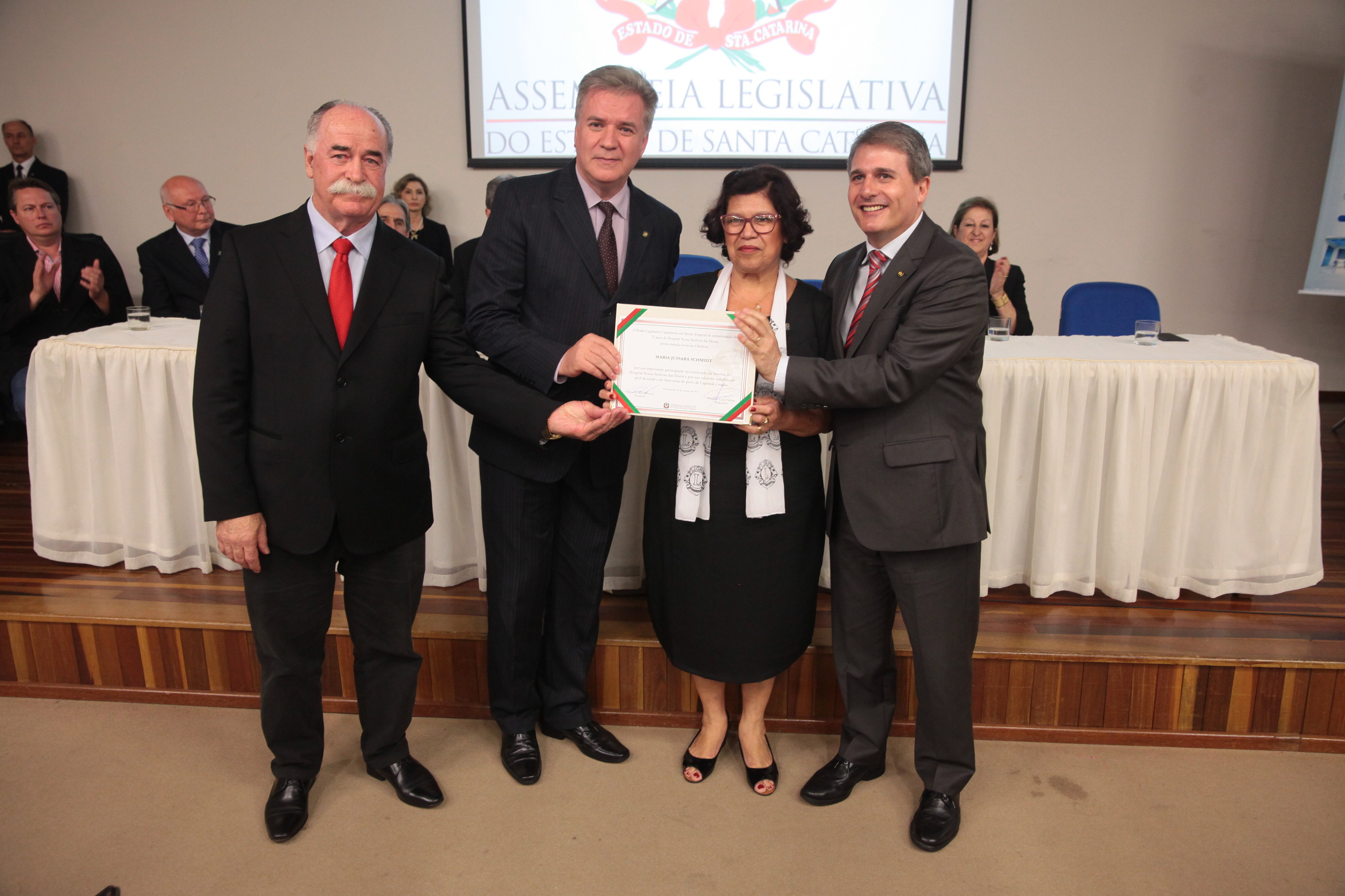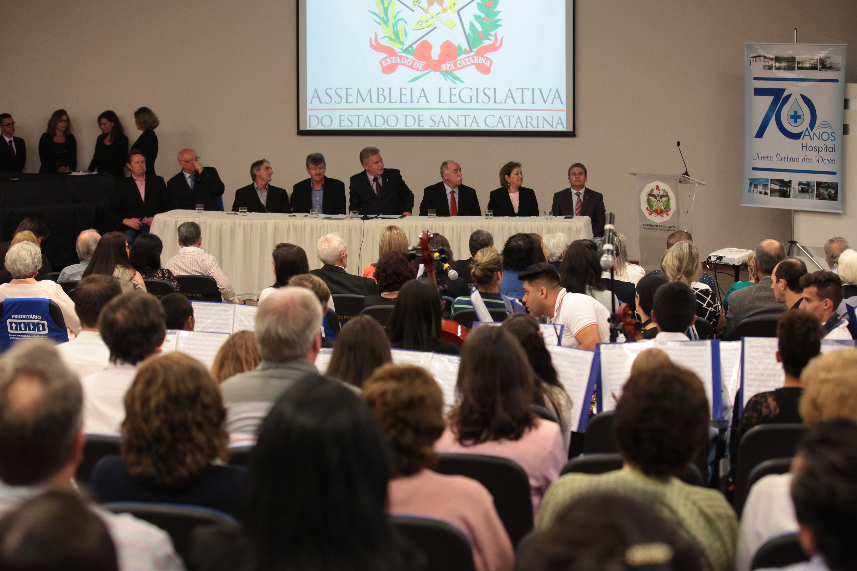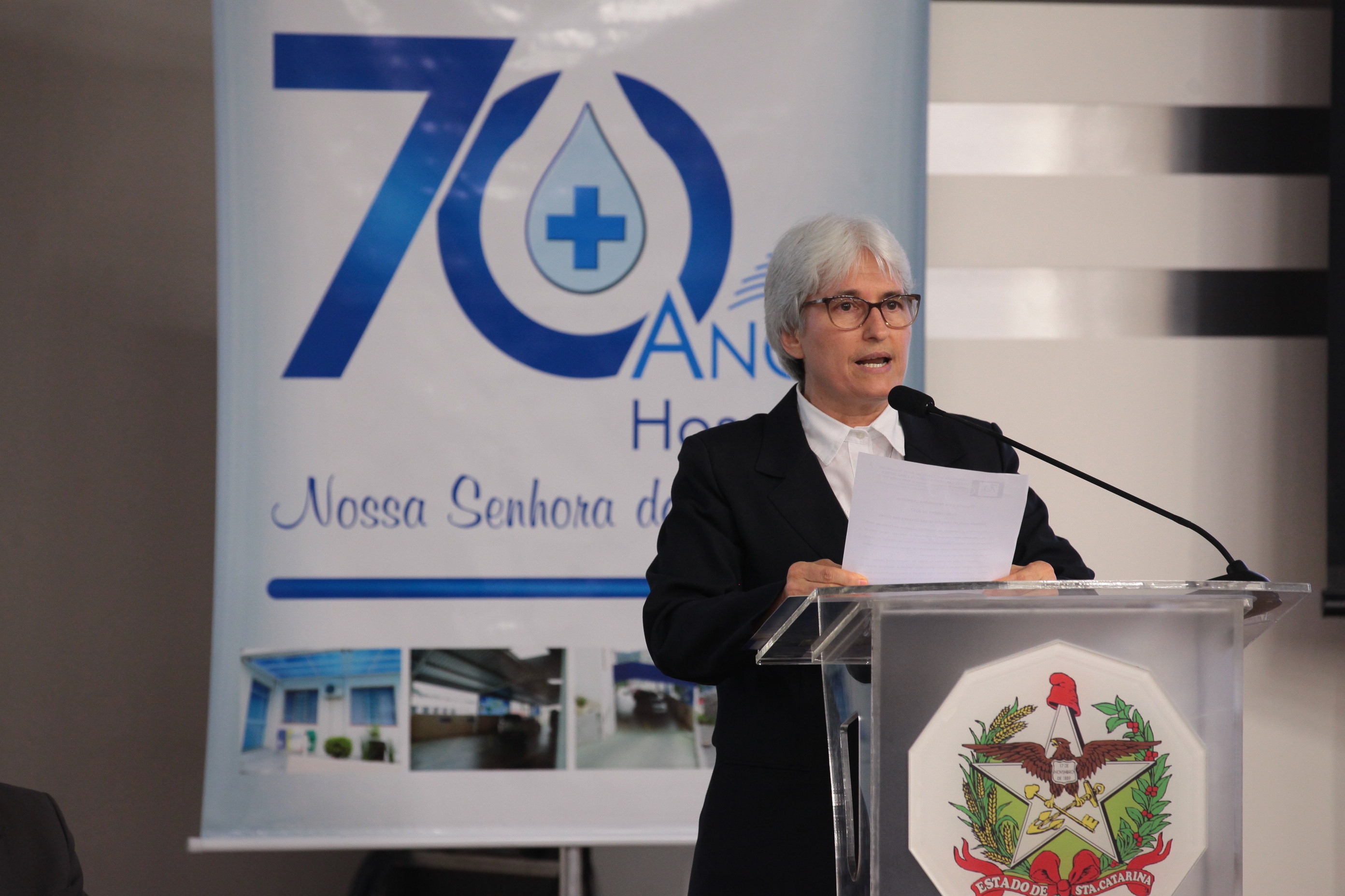 Os 70 anos de criação Hospital Nossa Senhora das Dores, de Capinzal, foram destacados na noite desta segunda-feira (30), em uma sessão solene realizada pela Assembleia Legislativa de Santa Catarina. A solenidade aconteceu na Universidade do Oeste de Santa Catarina (Unoesc), campus Capinzal, e reuniu lideranças políticas da região do Meio-Oeste, representantes de entidades de classe, de congregações religiosas e profissionais da área da saúde.