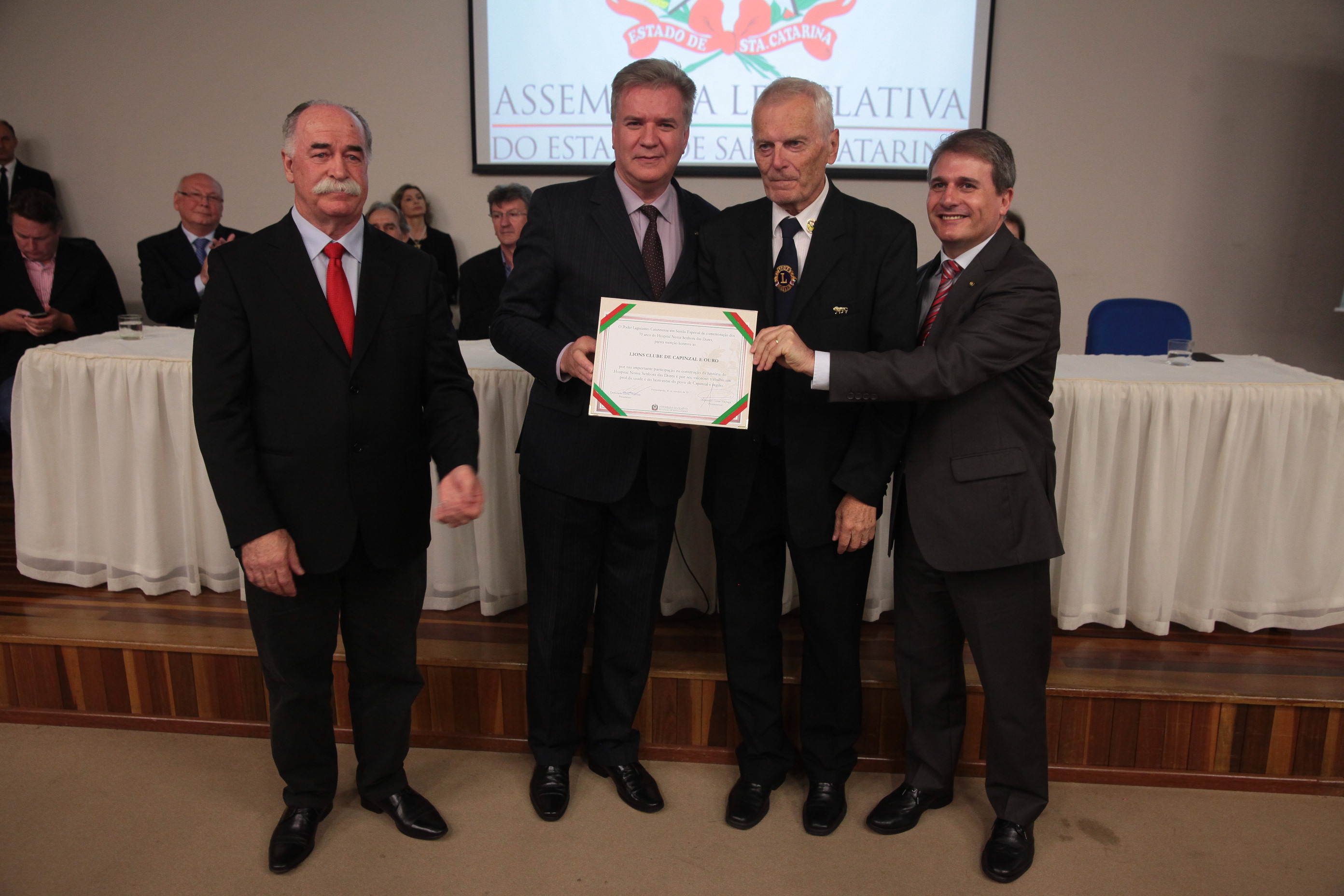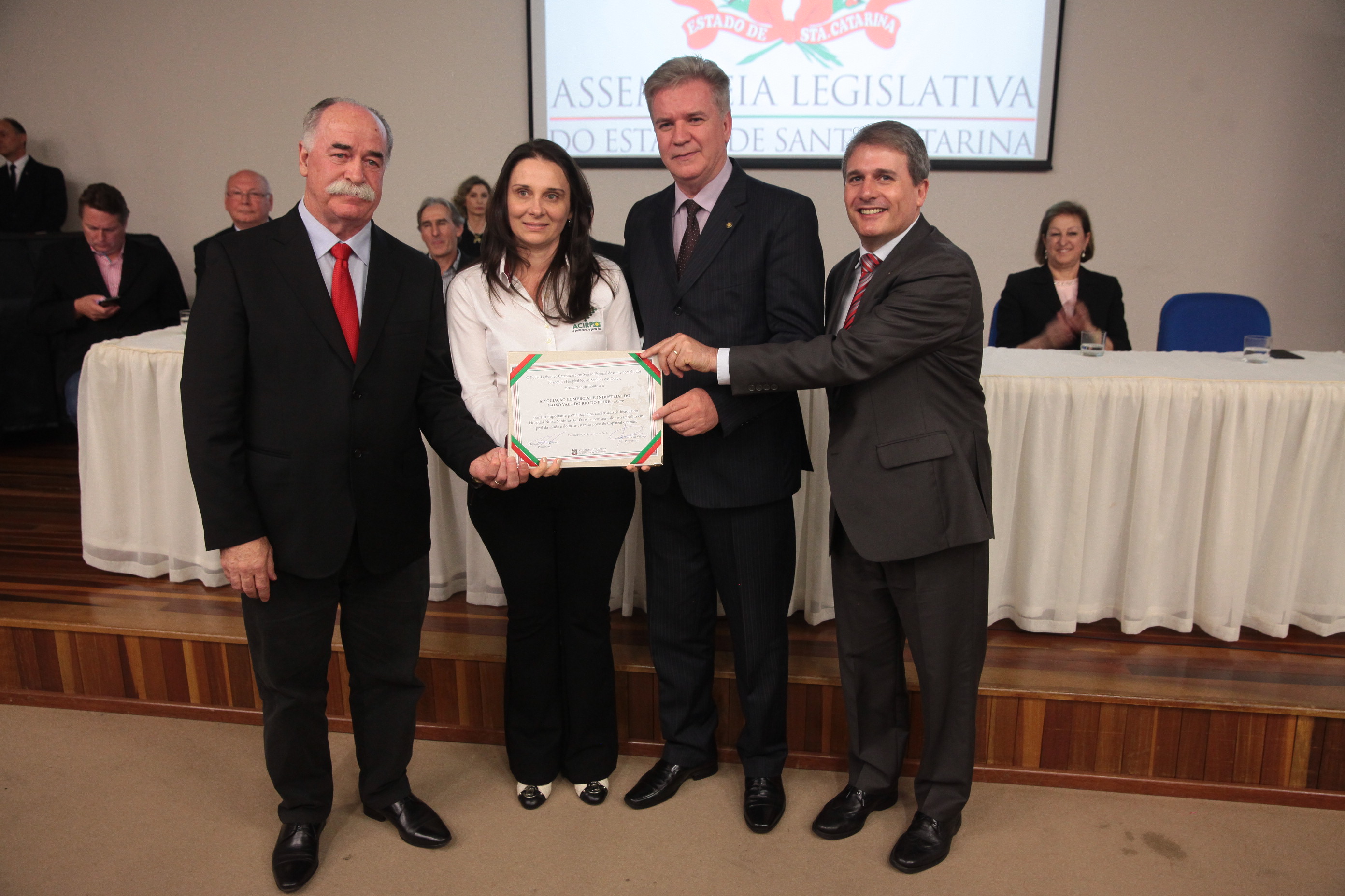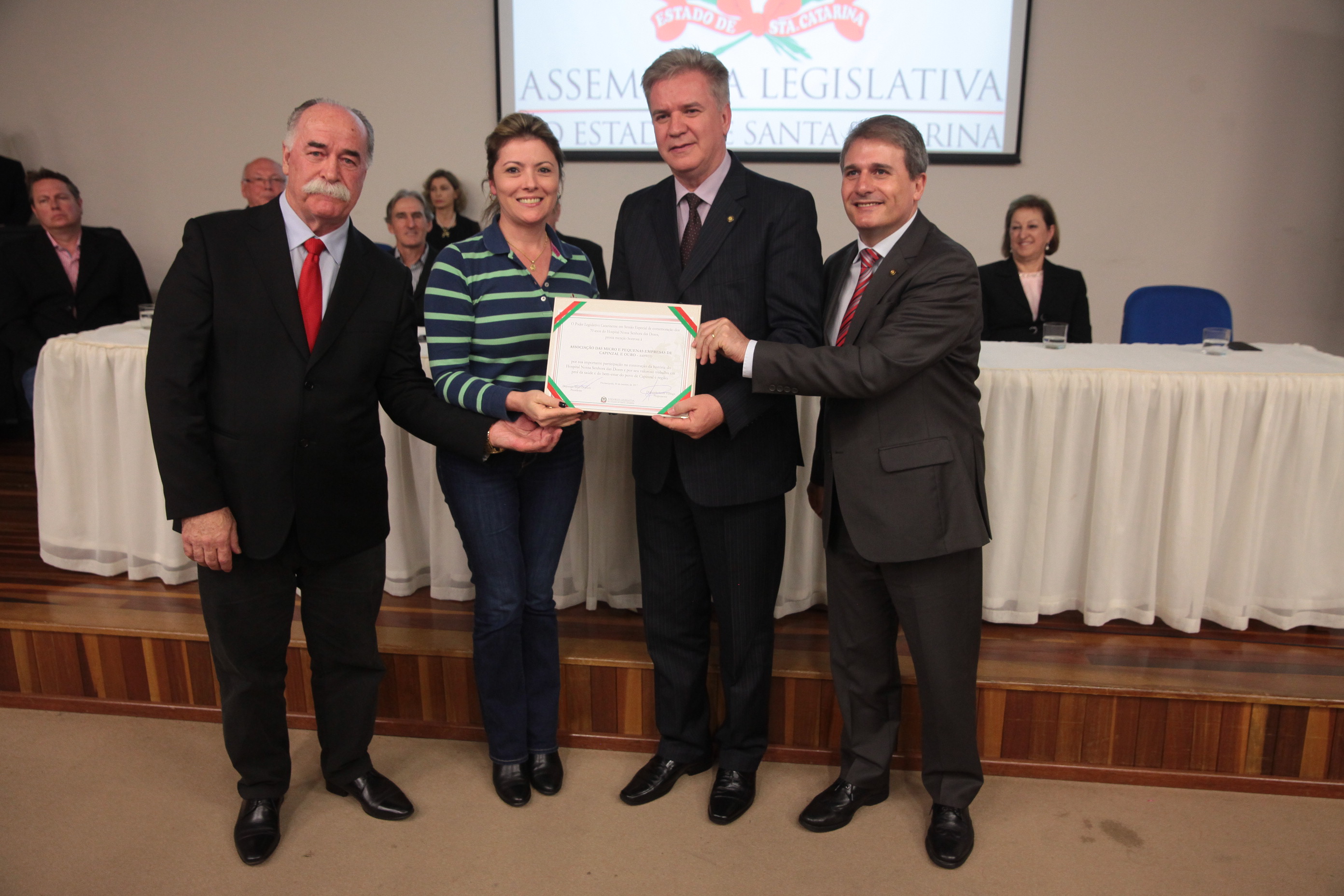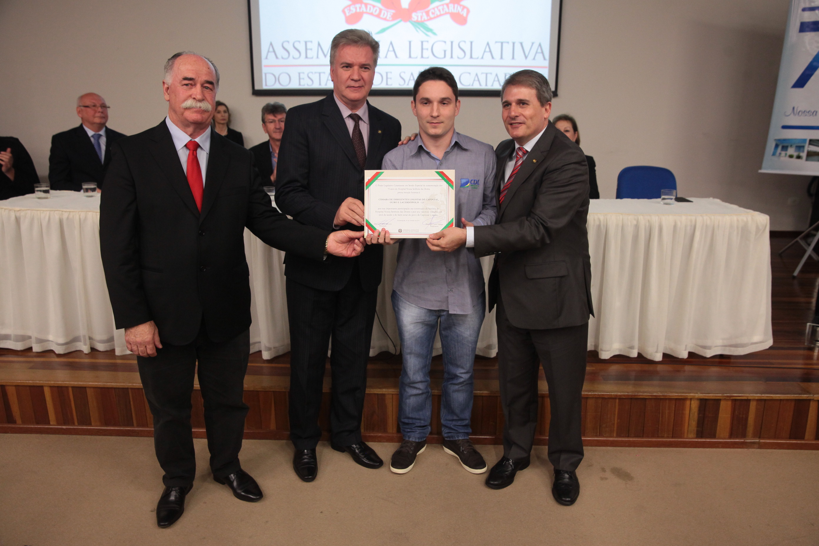 Os 70 anos de criação Hospital Nossa Senhora das Dores, de Capinzal, foram destacados na noite desta segunda-feira (30), em uma sessão solene realizada pela Assembleia Legislativa de Santa Catarina. A solenidade aconteceu na Universidade do Oeste de Santa Catarina (Unoesc), campus Capinzal, e reuniu lideranças políticas da região do Meio-Oeste, representantes de entidades de classe, de congregações religiosas e profissionais da área da saúde.