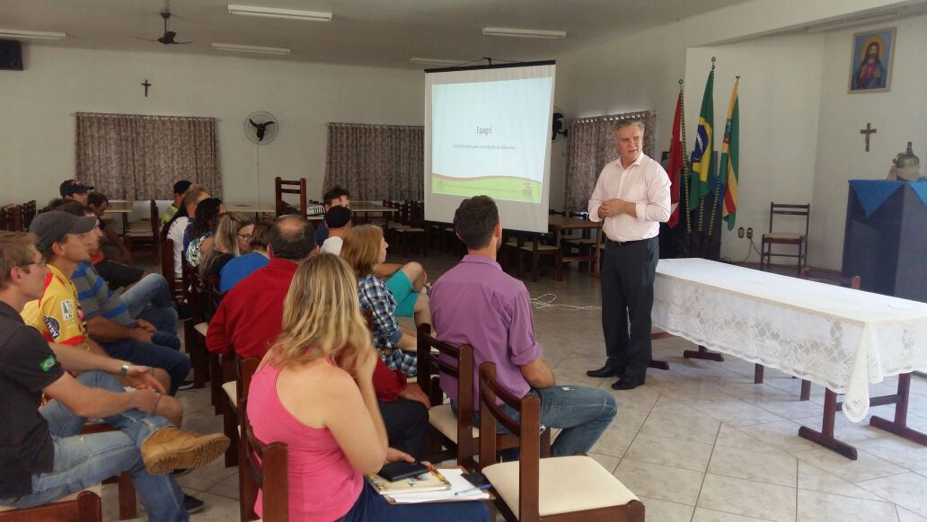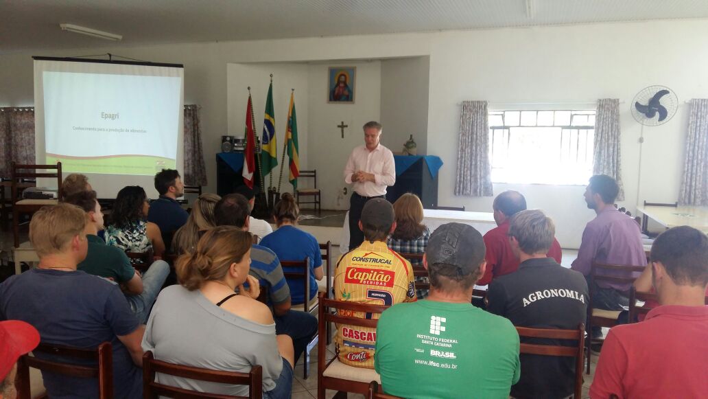 À convite do prefeito de Guarujá do Sul, José Carlos Foiato, o parlamentar participou de debate com jovens agricultores, na sede da Empresa Catarinense de Pesquisa Agropecuária e Extensão (Epagri), sobre os projetos que tramitam na Assembleia Legislativa sobre a agricultura familiar e o apoio à permanência da população rural jovem no campo.